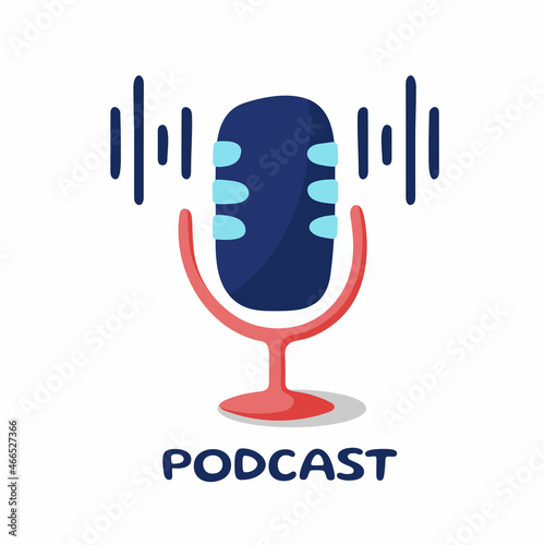 Fototapeta premium Microphone with sound waves. Podcast illustration