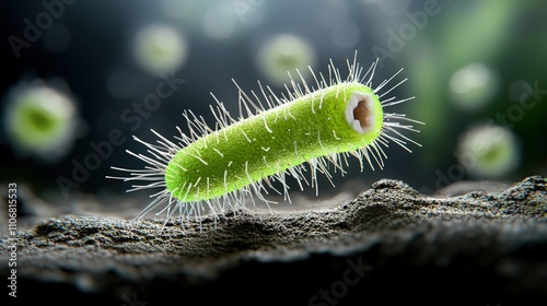 Naklejka premium Microscopic Bacteria Cell 3D Render Green Science Microbiology Illness