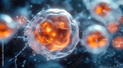 © afif, Obraz premium Microscopic Cell Division in Liquid Medium
