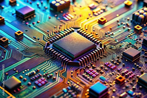 © prapatsorn, Fototapeta premium Microscopic Circuitry: Close-up Detail of Advanced Microchip Technology