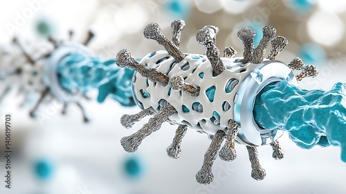Fototapeta premium Microscopic 3D Render of Virus Structure Nanorobotics Biomedical Science...