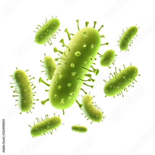 Fototapeta premium Microscopic Menace: A collection of vibrant, green bacteria, rendered in a...