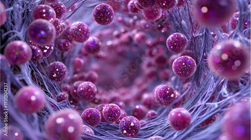 Fototapeta premium Microscopic red cells flowing through tissue tunnel