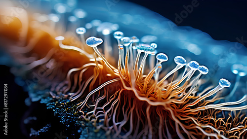 © Ahsan Ali, Obraz premium Microscopic View - Mushroom Stem with Visible Mycelium Network