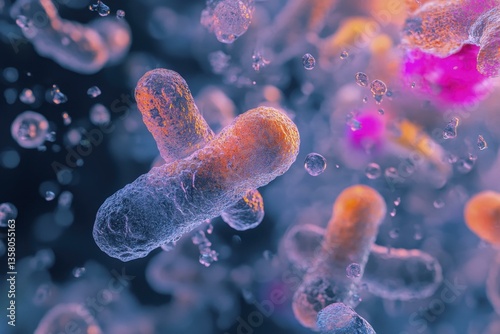 Naklejka premium Microscopic View of Bacteria Cells Dividing and Multiplying Under Fluorescent...