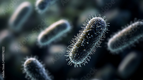 © Soulc, Fototapeta premium Microscopic View of Bacteria: Rod-Shaped Microorganisms with Surface Projections