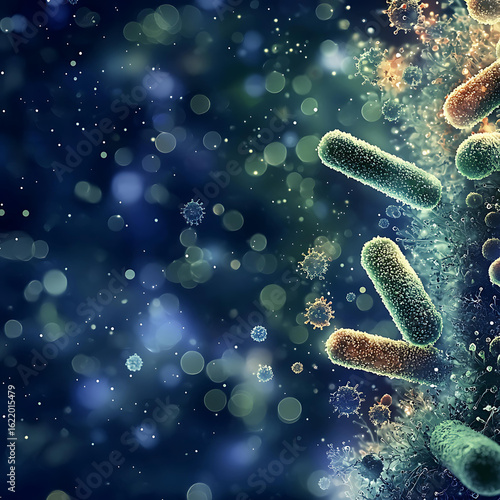 Fototapeta premium Microscopic View of Colorful Bacteria with Soft Focus Background Showing...