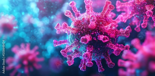 © Vins Space, Fototapeta premium Microscopic View of Coronavirus Cells Spreading Infection