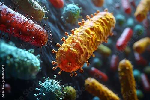 © Bagas, Naklejka premium Microscopic view of diverse bacteria