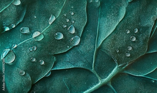 © Galina, Fototapeta premium Microscopic View of Glistening Water Droplets on Fresh Green Leaves