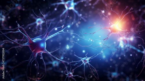 Naklejka premium Microscopic view of neural network. Glowing connections, representing brain...