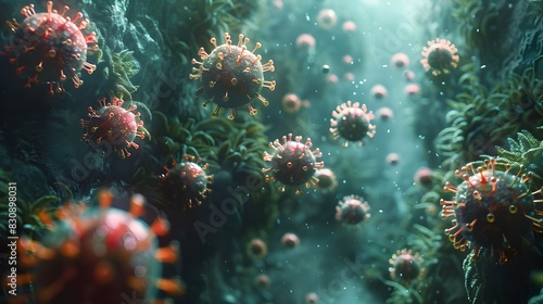 Obraz premium Microscopic View of Novel Coronavirus Outbreak Impacting Global Health and...
