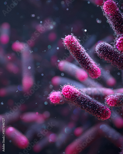 © Sakib G, Fototapeta premium Microscopic view of pink bacteria