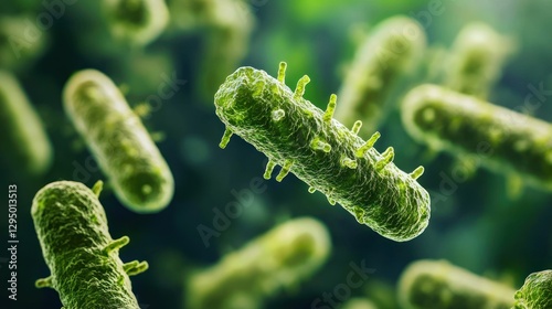 © bulegendut, Naklejka premium Microscopic view of rod-shaped bacteria.