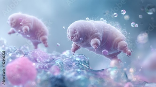© Julia Jones, Fototapeta premium Microscopic view of tardigrades floating in a surreal underwater habitat