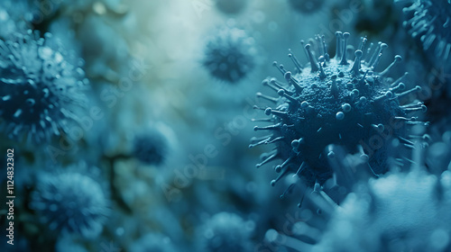 © Zyariss, Obraz premium Microscopic view of viruses, detailed 3D rendering.