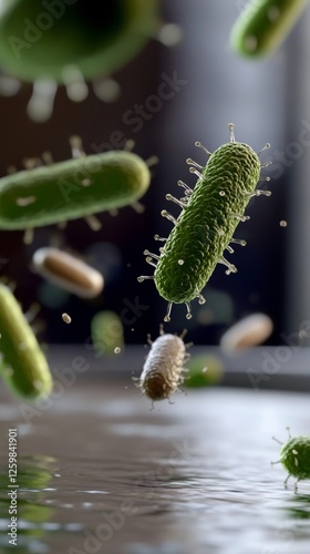 Naklejka premium Microscopic view reveals diverse bacterium in a dynamic environment...