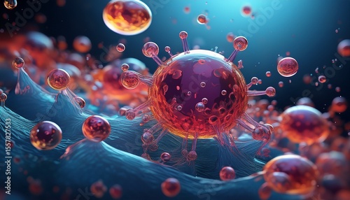 © Alan, Naklejka premium microscopic virus cells in liquid bubbles rising