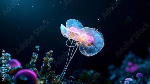 Naklejka premium Microscopic World Vibrant Cellular Design Kaleidoscopic Colors High...
