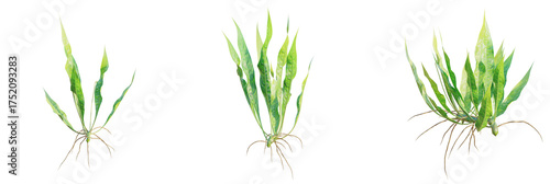 Obraz premium Microsorum pteropus tree plan, top view, cutout, transparent background, isolate, Vibrant green aquatic plant with exposed roots for aquarium design