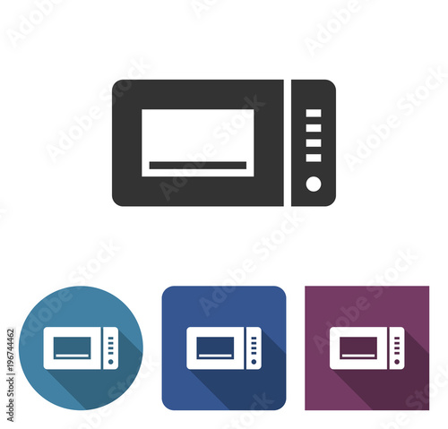Fototapeta premium Microwave icon in different variants with long shadow