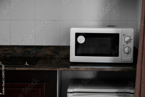 © Volodymyr_sh, Obraz premium Microwave in a kitchen for cooking or heating a dish.
