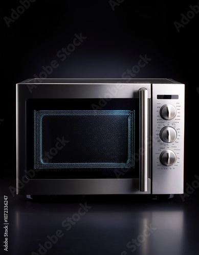 © Saddha Visual, Fototapeta premium microwave, isolated on a dark black