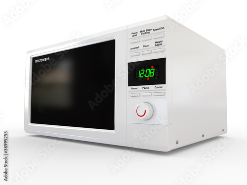 © Maksym Yemelyanov, Fototapeta premium Microwave on white background. 3d