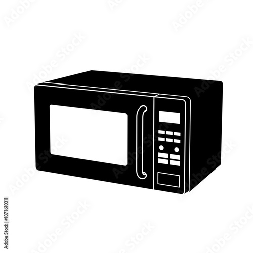 Obraz premium Microwave Oven Silhouette Vector Icon - Kitchen Appliance Black Shape on White Background - Minimalist Cooking Symbol
