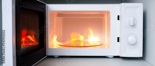 © Rendra, Fototapeta premium Microwave with simulated fire