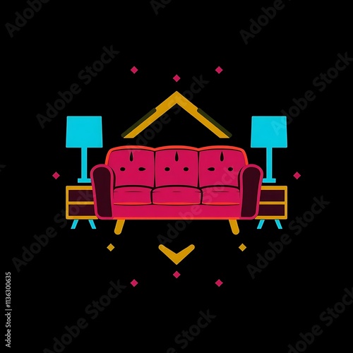© Michel, Obraz premium Mid-Century Modern Living Room Icon