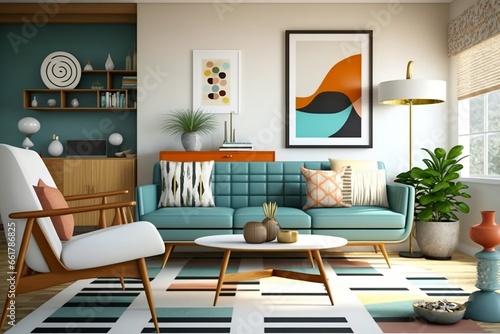 Fototapeta premium Mid-Century Modern Living Room - Timeless Elegance with a Retro Twist