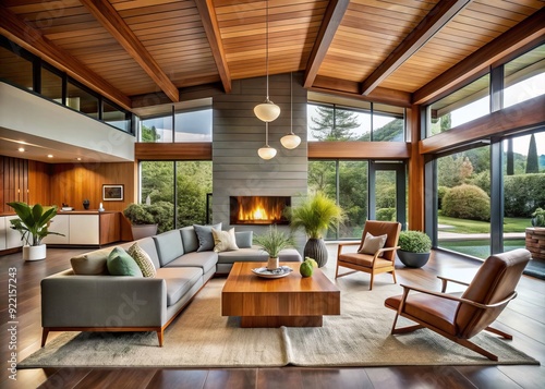 Fototapeta premium Mid-Century Modern Marvel: Clean lines, organic forms, warm woods, muted colors, minimalist