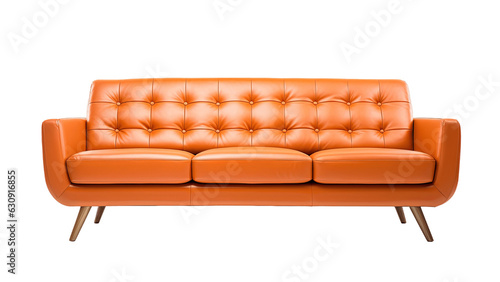 Obraz premium Mid-Century Modern orange sofa isolated on transparent background. PNG file, cut out