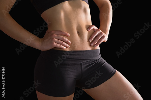 Fototapeta premium Mid section of slim fit woman posing in sportswear