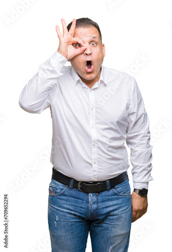 Fototapeta premium Middle age arab elegant man over isolated background doing ok gesture shocked...
