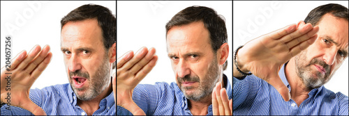 © Krakenimages.com, Obraz premium Middle age handsome man closeup confident and happy showing hands to camera, composing and framing gesture