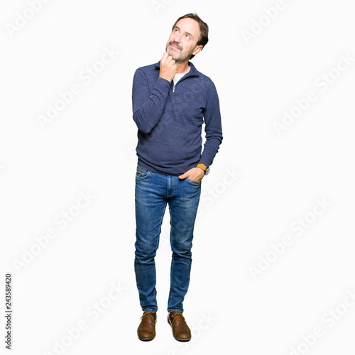 Fototapeta premium Middle age handsome man wearing a sweater with hand on chin thinking about...