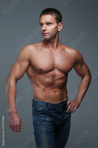 © Fxquadro, Fototapeta premium Middle age man in denim jeans