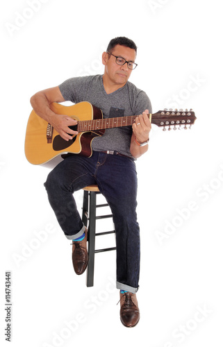 © 80Feierabend, Obraz premium Middle age man playing his guitar.