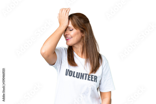 Fototapeta premium Middle age volunteer woman over isolated background has realized something...