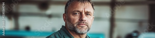 © Юля Бурмистрова, Obraz premium Middle-aged Asian male technician assesses lab equipment for sulfuric acid processing in industrial setting