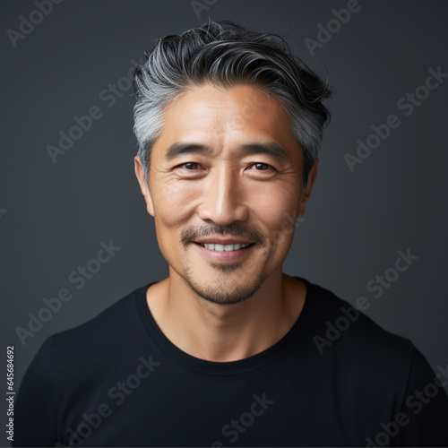 © Nelover Studio, Fototapeta premium middle aged asian man, natural, carefree, short hair