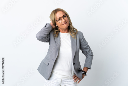 © luismolinero, Fototapeta premium Middle aged business woman over isolated white background having doubts