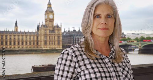 Obraz premium Middle-aged lady in London glares sternly at the camera