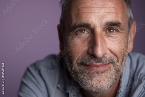 Obraz premium Middle-Aged Man with Confident Smile on Lavender Background for Portrait and...