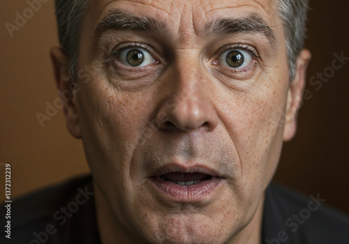 © Ольга Моторина, Obraz premium Middle-aged Man With Startled Expression Against Blurred Background