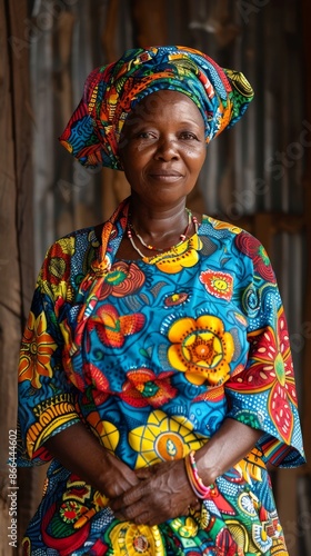 © peppastocker, Fototapeta premium Middle-aged Nigerian woman with a colorful dress