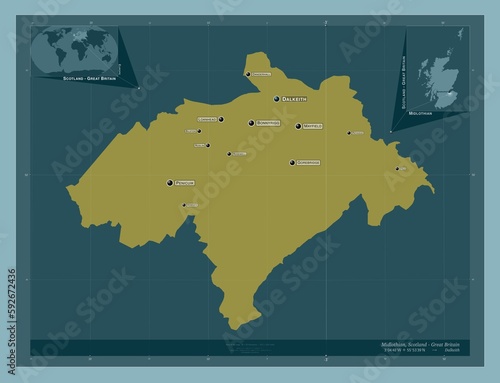 © Yarr65, Obraz premium Midlothian, Scotland - Great Britain. Solid. Labelled points of cities
