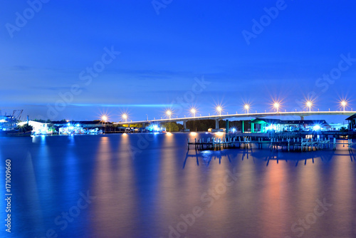 © Suthin, Fototapeta premium Midnight blue and bridge over the river
